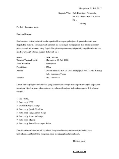 Untuk mendapatkan pekerjaan yang bagus sesuai dengan yang anda inginkan di sebuah perusahaan, anda wajib mengajukan surat lamaran kerja. Untuk membuat surat lamaran pekerjaan tentunya kamu perlu memperhatikan beberapa hal. Studio morowali 1 year ago. Surat lamaran yang ditujukan untuk perusahaan swasta tentu akan berbeda. Lamaran diantar langsung ke kantor pt imip.